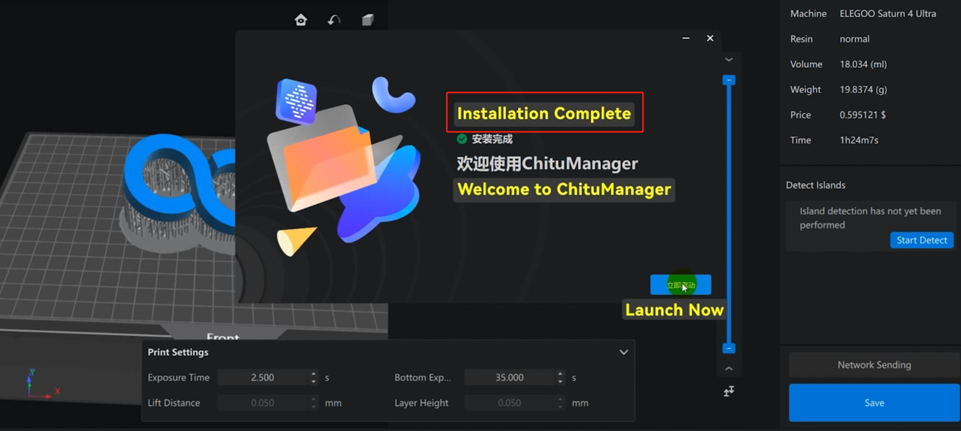 Click on “Network Sending” and in the pop-up window, click on “Download and Install.” Follow the prompts to complete the installation of ChituManager software.