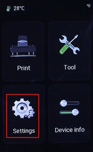 Once the printer is powered on, it will start the self-test process. On the touch screen, click on “Settings” - “WiFi” and select the desired WiFi network to connect.