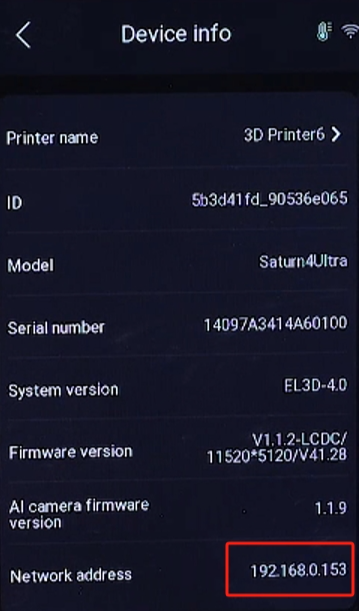 After connecting to WiFi, go back to the main page. Click on “Device info” and make note of the “Network address.”